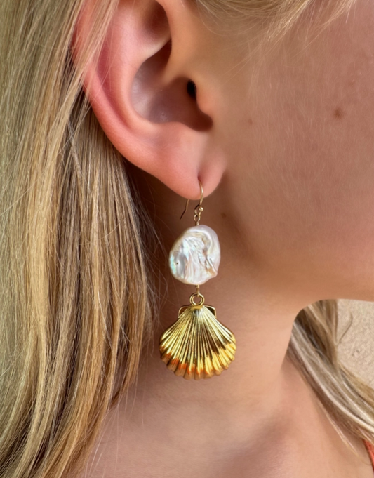 Pearl and Shell Drop Earrings
